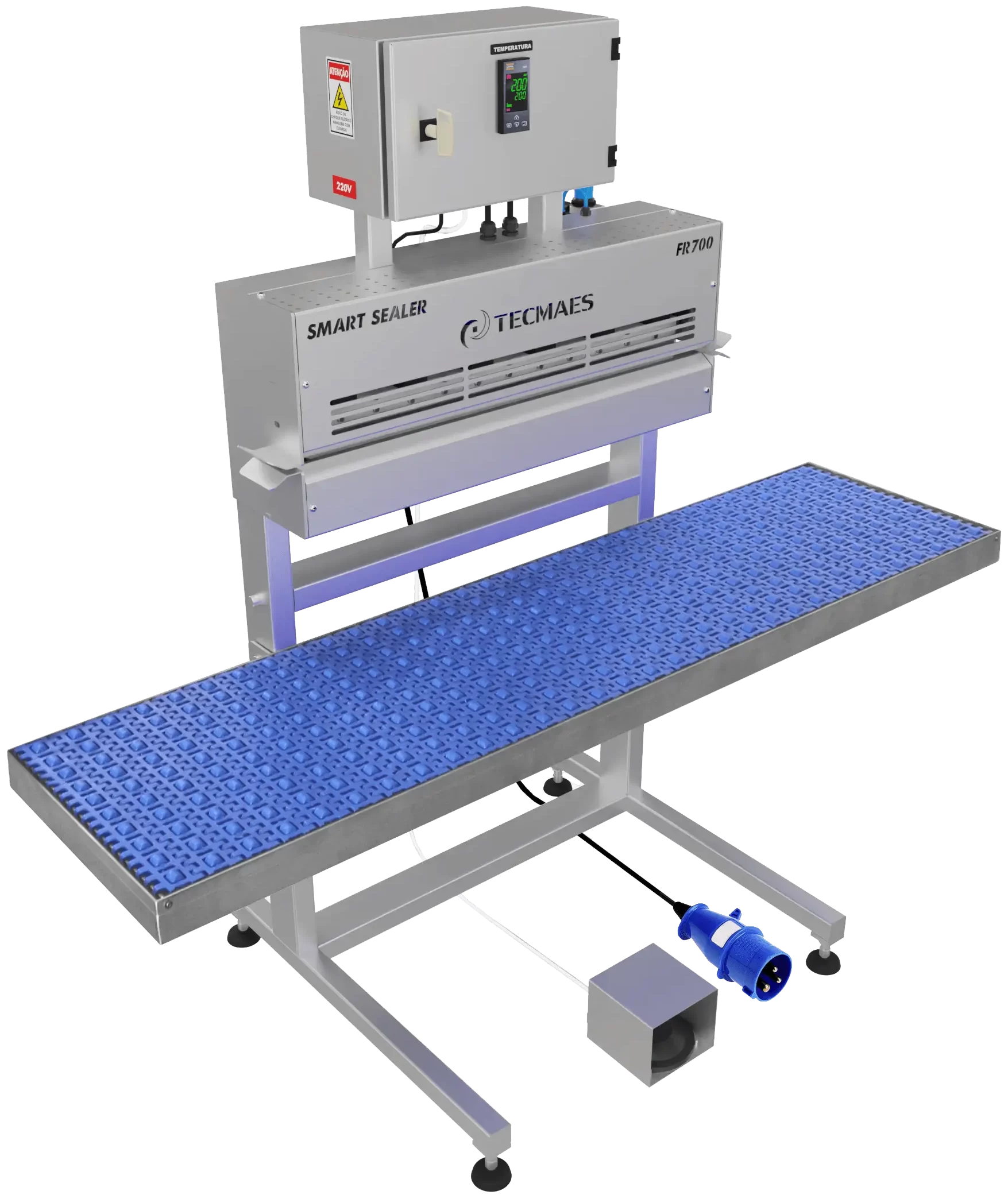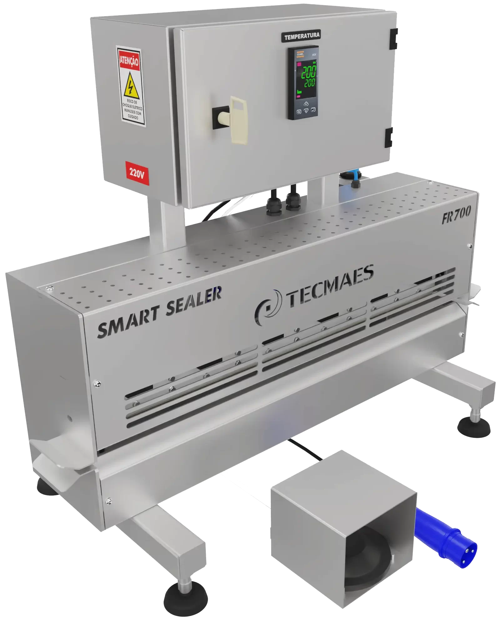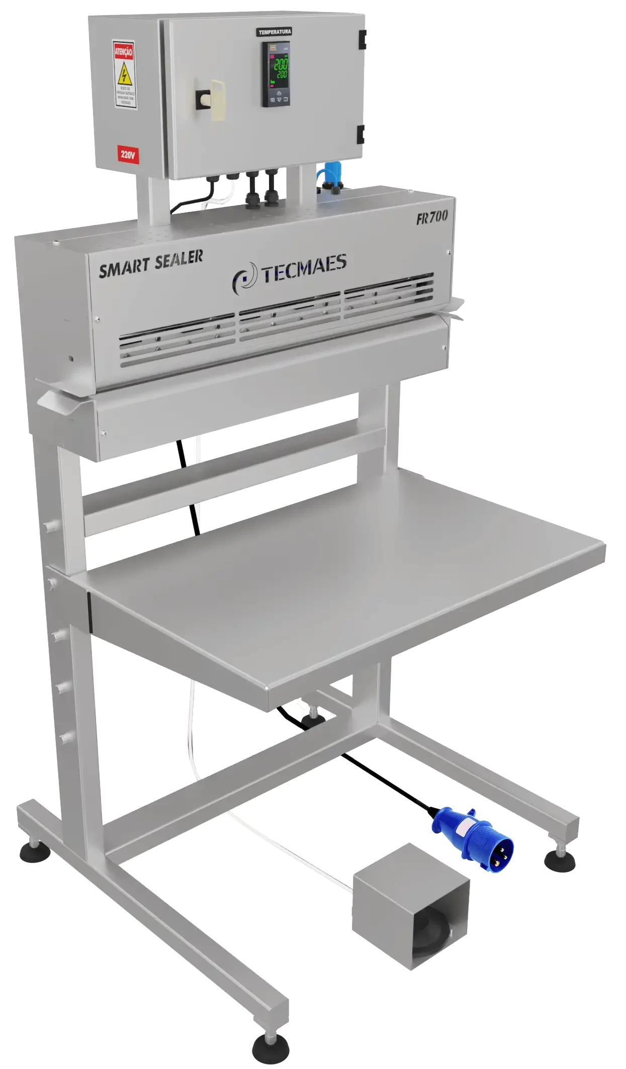 This thermal sealer model complies with NR12 standards with temperature controller, fully shielded pneumatic drive, developed for: cold storage facilities, poultry, fish, dairy slaughterhouses and others.